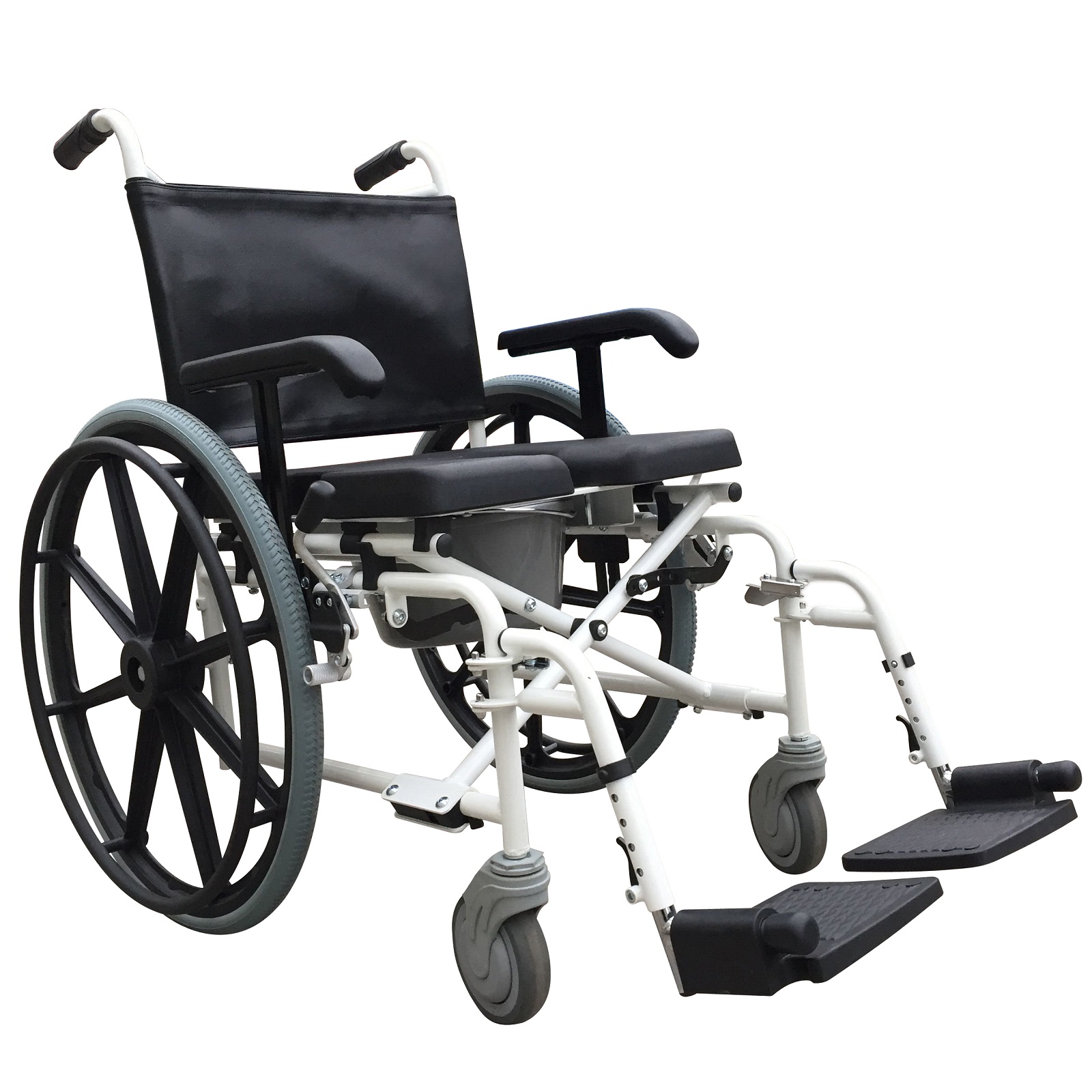 Self propel Wheeled mobile commode shower chair with removeable footrests and armrests